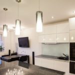 Deux à trois sources lumineuses sur les suspensions rempliront bien les fonctions d'éclairage d'un espace compact. La condition pour choisir un lustre multi-rail au plafond est une petite taille.
