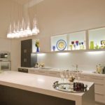 L'éclairage dans la cuisine fournit une variété de dispositifs d'éclairage. Une vue commune est un point qui est fixé dans un plafond tendu directement au-dessus de la zone de travail. Ce sont: