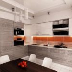 | Minimalisme complet | Une cuisine de 15 mètres deviendra très pratique lors du choix d'un style minimalisme. Cette décision de conception a un certain nombre de caractéristiques: des nuances claires de la palette, l'absence de détails inutiles, des meubles modulaires, du verre, du bois, des éléments de garniture chromés. |