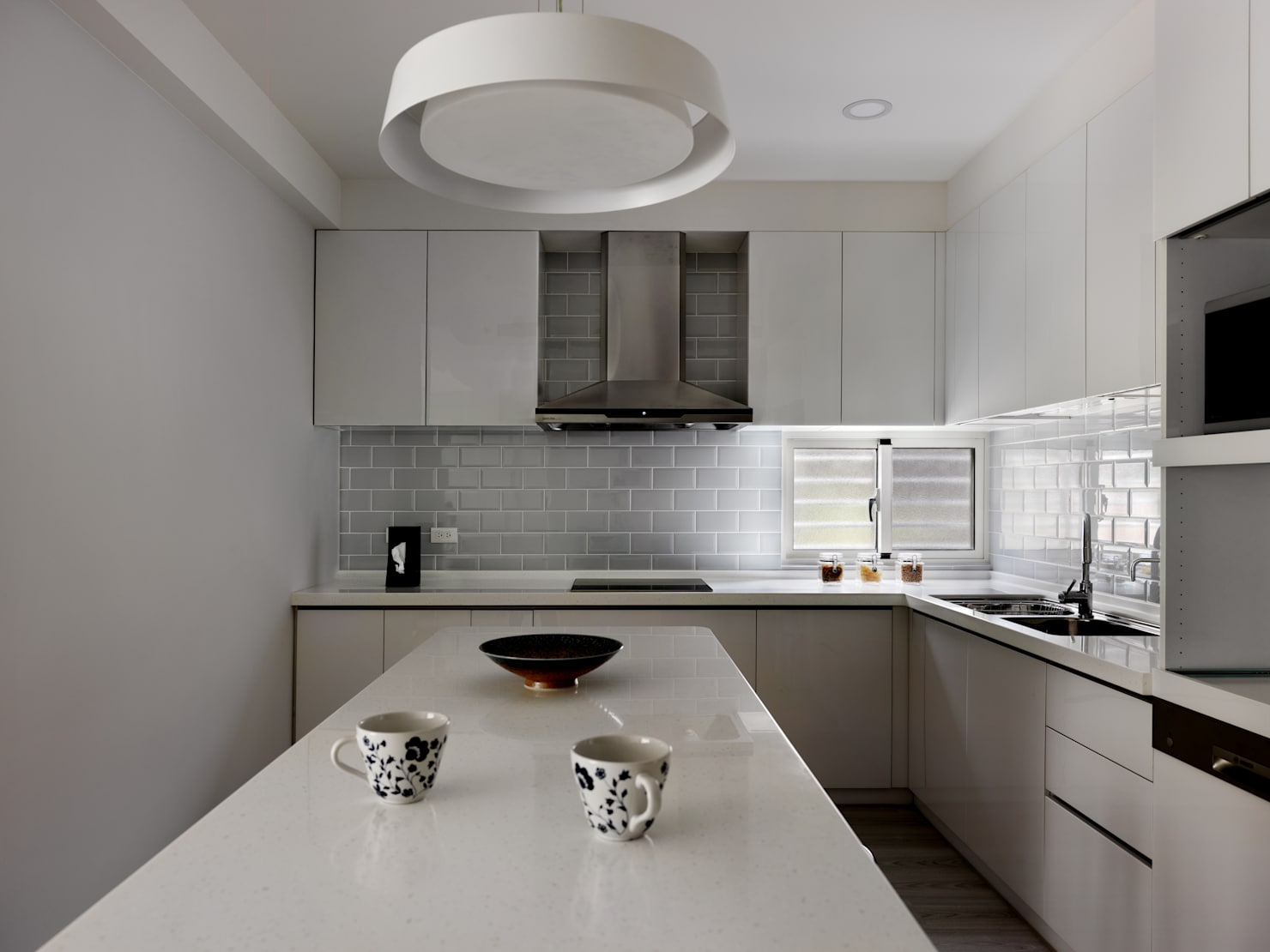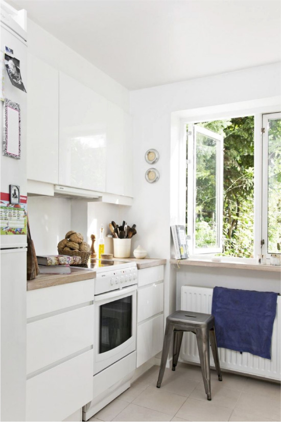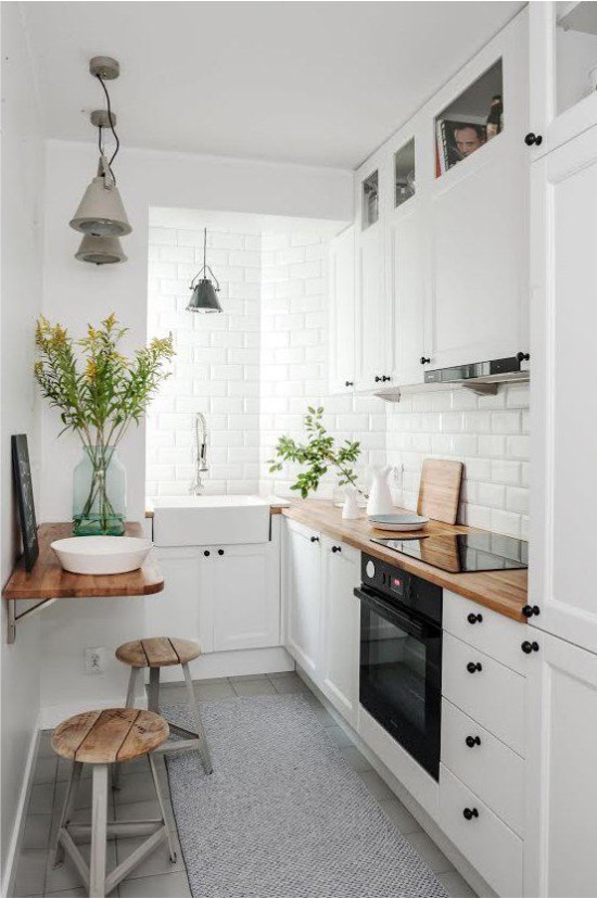 L'intérieur blanc est le choix parfait pour une petite cuisine