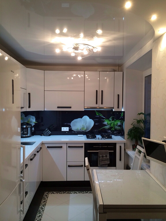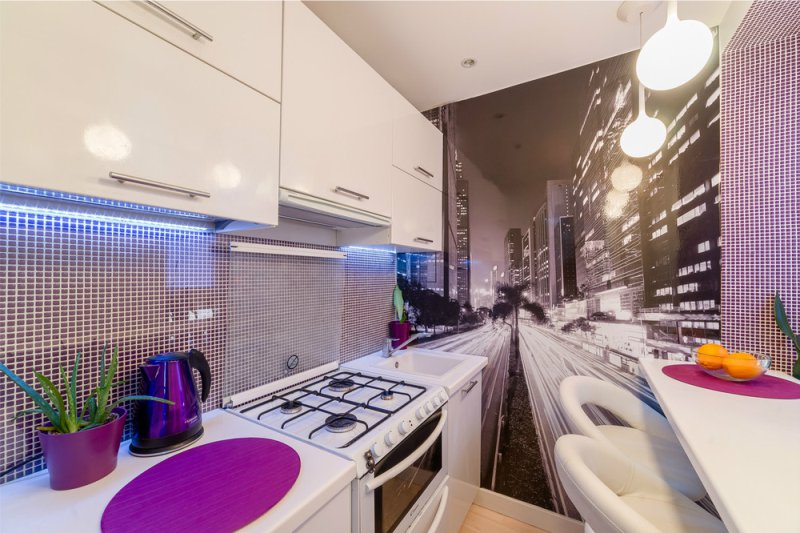 Il existe de nombreux modèles prêts à l'emploi intéressants pour de telles pièces, à partir desquels vous pouvez dessiner une idée audacieuse pour décorer la cuisine de votre propre appartement. Si nécessaire, vous pouvez recourir aux services d'un designer expérimenté.
