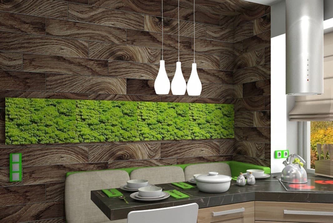 - Style Eco - contrastes de couleurs minimum, manque de plastique, uniquement des matériaux naturels, textures naturelles, plantes d'intérieur en pots d'argile. C'est le style le plus pratique et le plus simple pour décorer la cuisine.