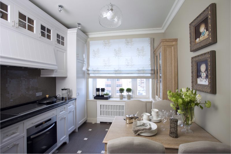 - Classique - idéal pour les petits mètres carrés, à condition qu'il n'y ait pas de meubles lourds sombres, de lourds rideaux épais. Tout doit être harmonieux, sans fioritures.