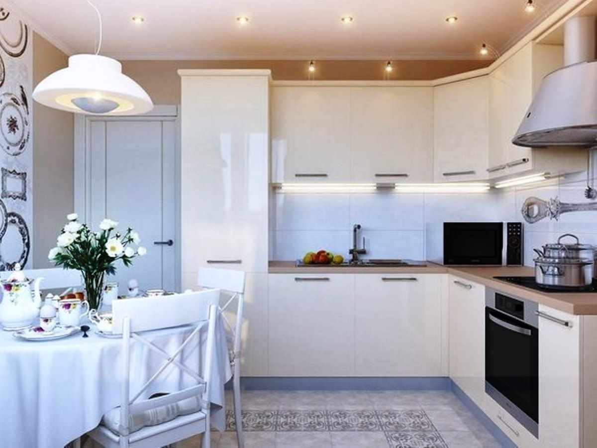 La meilleure disposition des meubles dans la cuisine est un coin. En fonction de la cuisine, l'emplacement des allées, des fenêtres et des portes, l'emplacement du comptoir, du mobilier domestique, de la table à manger, du comptoir de bar et la possibilité d'aménager l'îlot dépendent.
