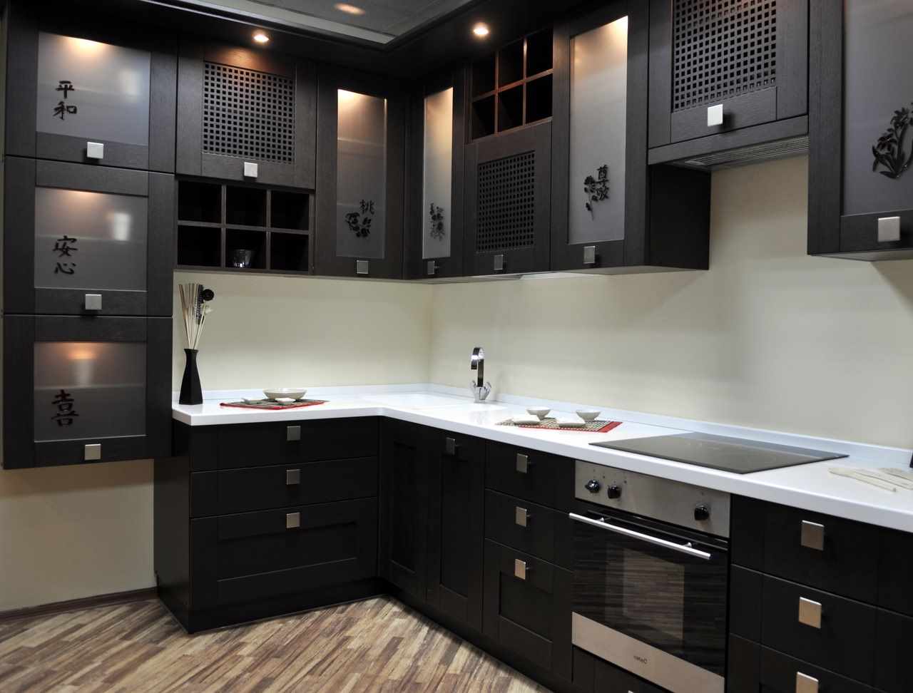 Intéressant! Pour les amateurs de créativité culinaire, une cuisine est proposée - un lieu de travail. Il doit combiner une salle technologiquement ergonomique et une atmosphère créative et de travail.Dans une telle cuisine, toutes sortes d'accessoires «exotiques» pour des plats exclusifs conviendront, que ce soit des couteaux spéciaux et des tapis en bambou pour faire des rouleaux, des ciseaux spéciaux pour enlever les huîtres ou un récipient spécial pour préparer du café moulu dans le sable. À l'intérieur d'une telle cuisine, assurez-vous d'ajouter des panneaux d'information avec la possibilité d'enregistrer des recettes pour les premier et deuxième plats sur eux, ainsi que pour la plainte du menu d'aujourd'hui. La fenêtre de la cuisine peut être décorée de toutes sortes de statuettes de cuisiniers ou d'un Bouddha dodu.