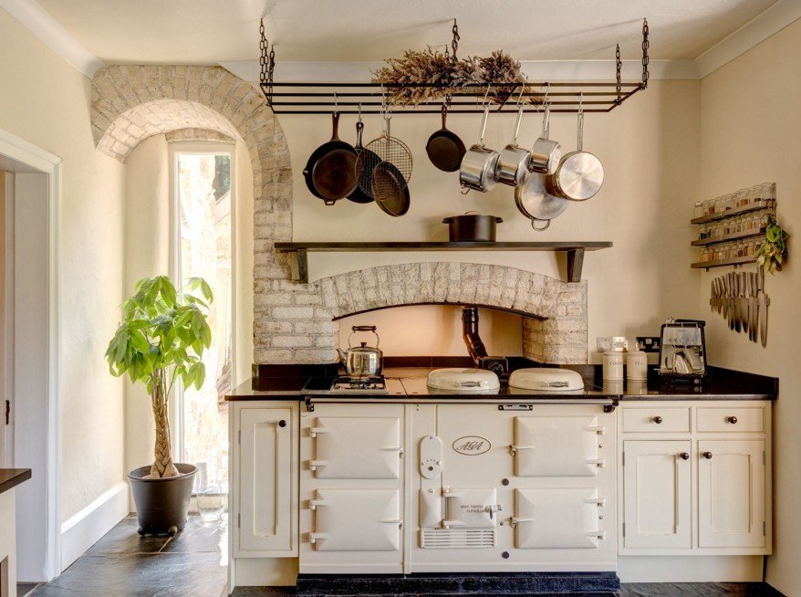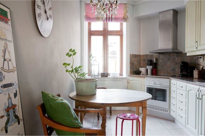 Il n'y a pas de restrictions spécifiques sur l'utilisation de cette conception. Le pays a fière allure à la fois dans les grandes et spacieuses cuisines des hôtels particuliers et dans les petites pièces de Khrouchtchev ou des appartements simples. Cette conception rend toute pièce expressive, esthétique et sophistiquée.