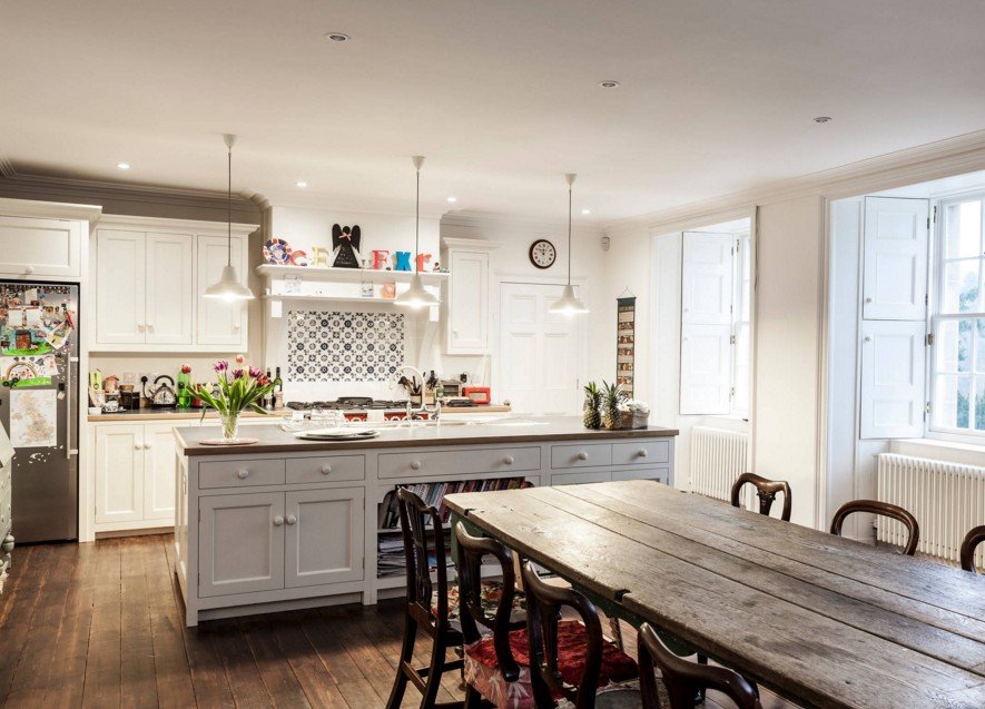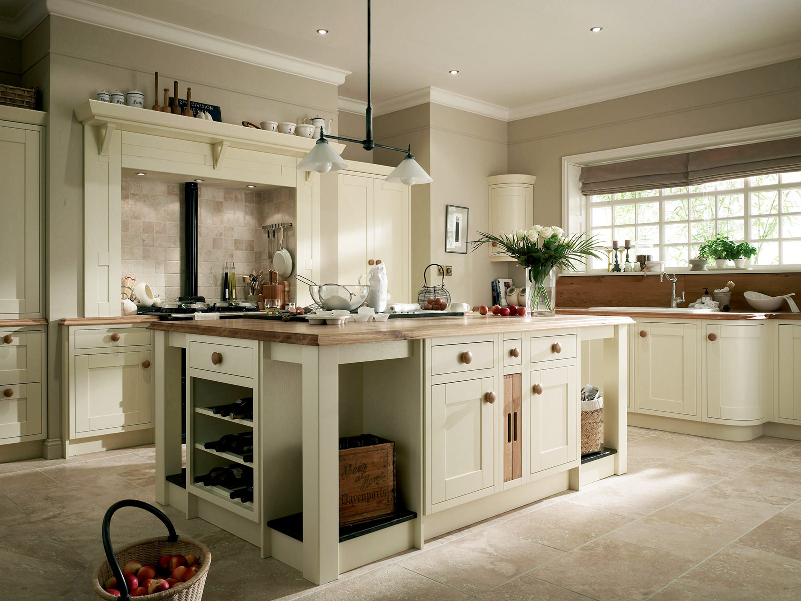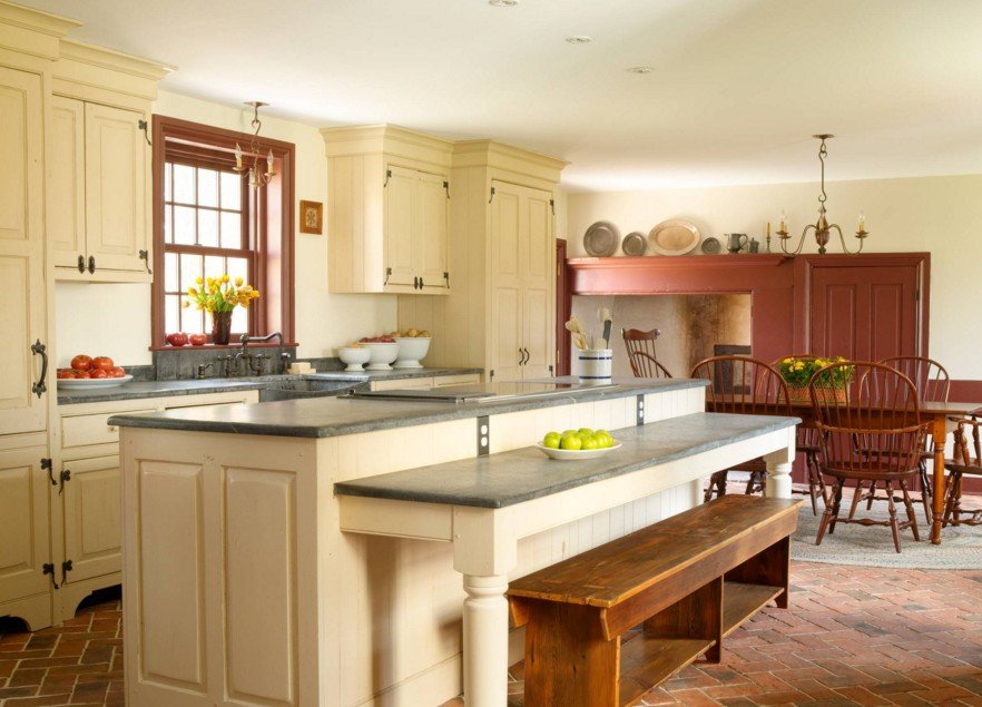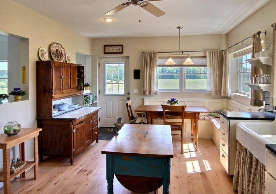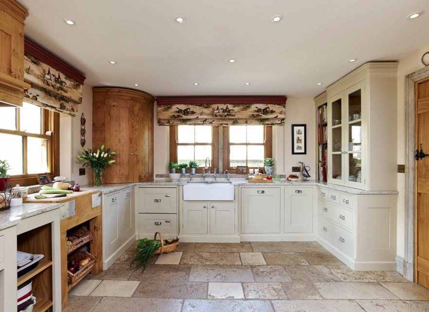 Mais une cuisine de style champêtre peut également être conçue exclusivement pour le style américain ou anglais d'une maison rustique ou de campagne.