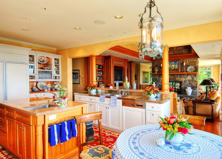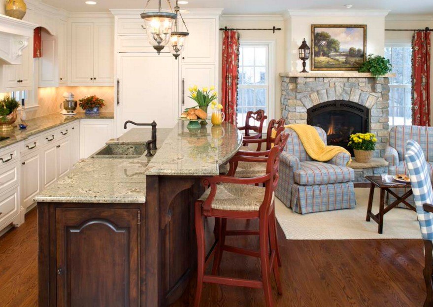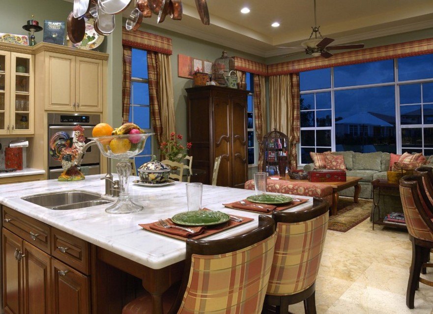 Le choix des meubles pour la cuisine-salon dans le style campagnard dans une maison privée