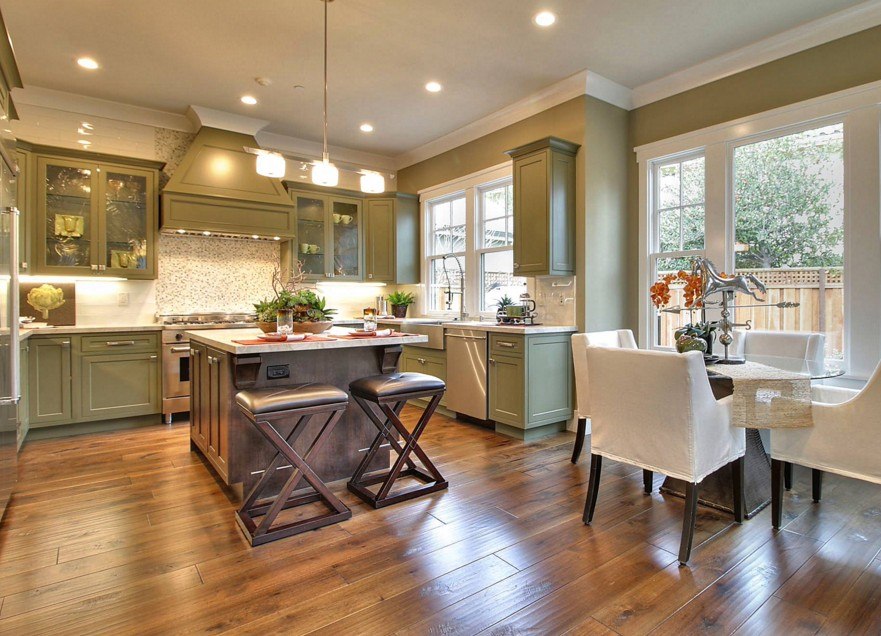 Un plafond en bois transformera n'importe quelle cuisine urbaine en un porche rustique, mais un arbre à l'ombre naturelle réduira la hauteur de la pièce