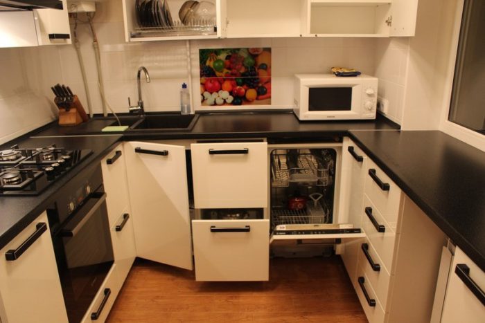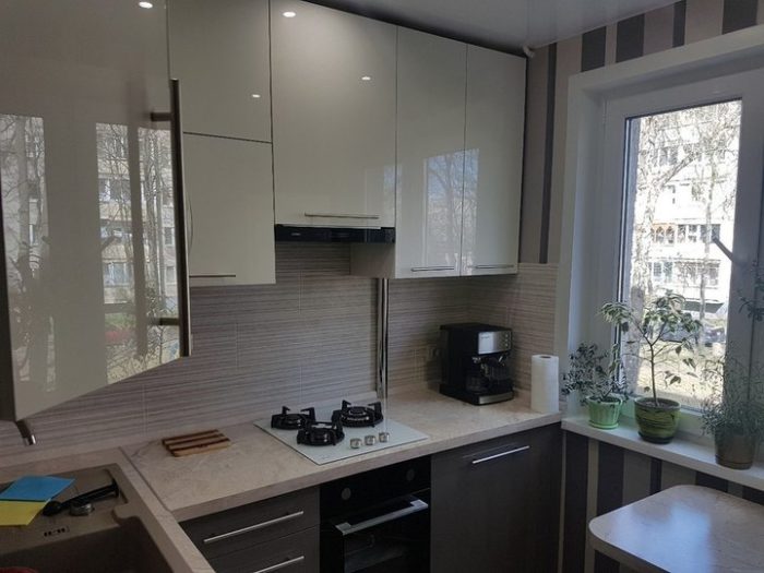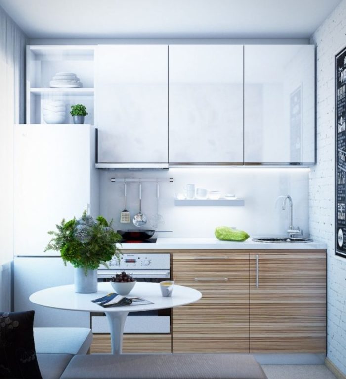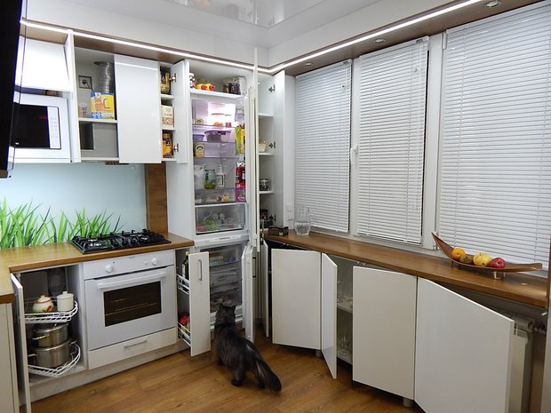 La tâche clé dans la conception d'une petite cuisine est une augmentation visuelle de la superficie de la pièce