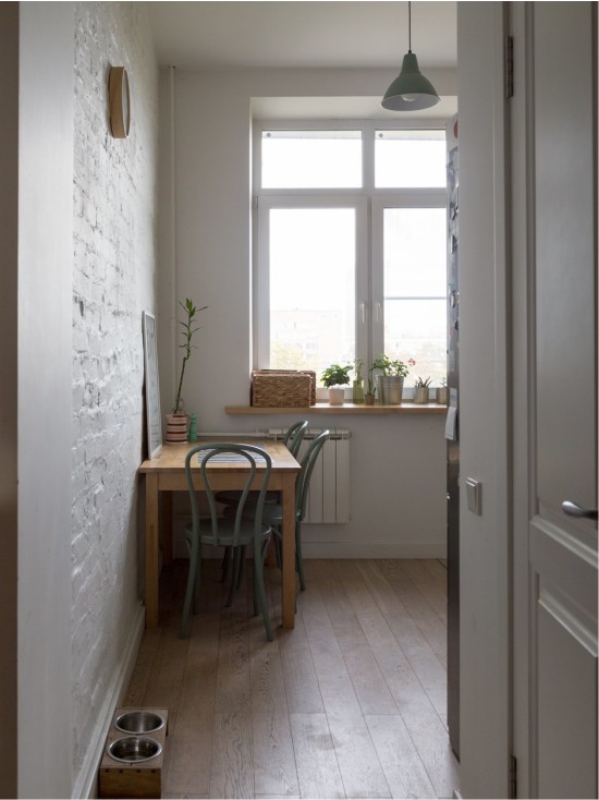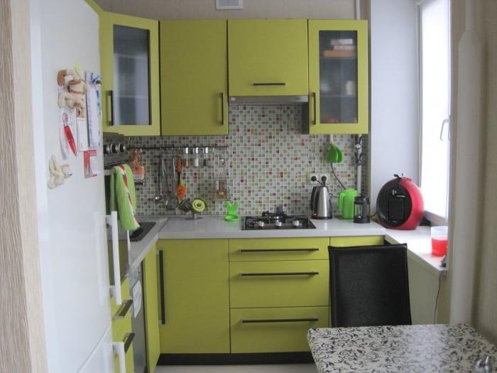La teinte verte du jeune feuillage est l'une des meilleures options pour l'intérieur d'une petite cuisine