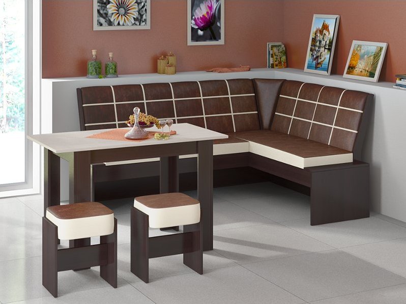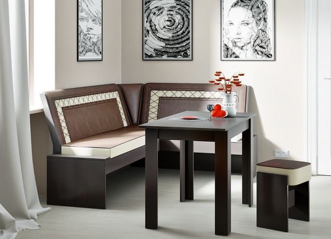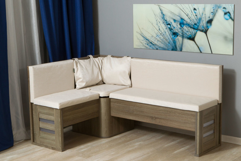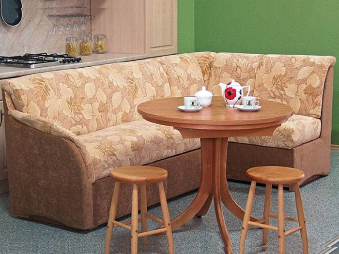 Cependant, un canapé d'angle avec une couchette ne peut pas toujours tenir dans une cuisine ordinaire, au moins un côté doit être de la taille d'une personne. La question est, où mettre la table de cuisine, lors du pliage du canapé?