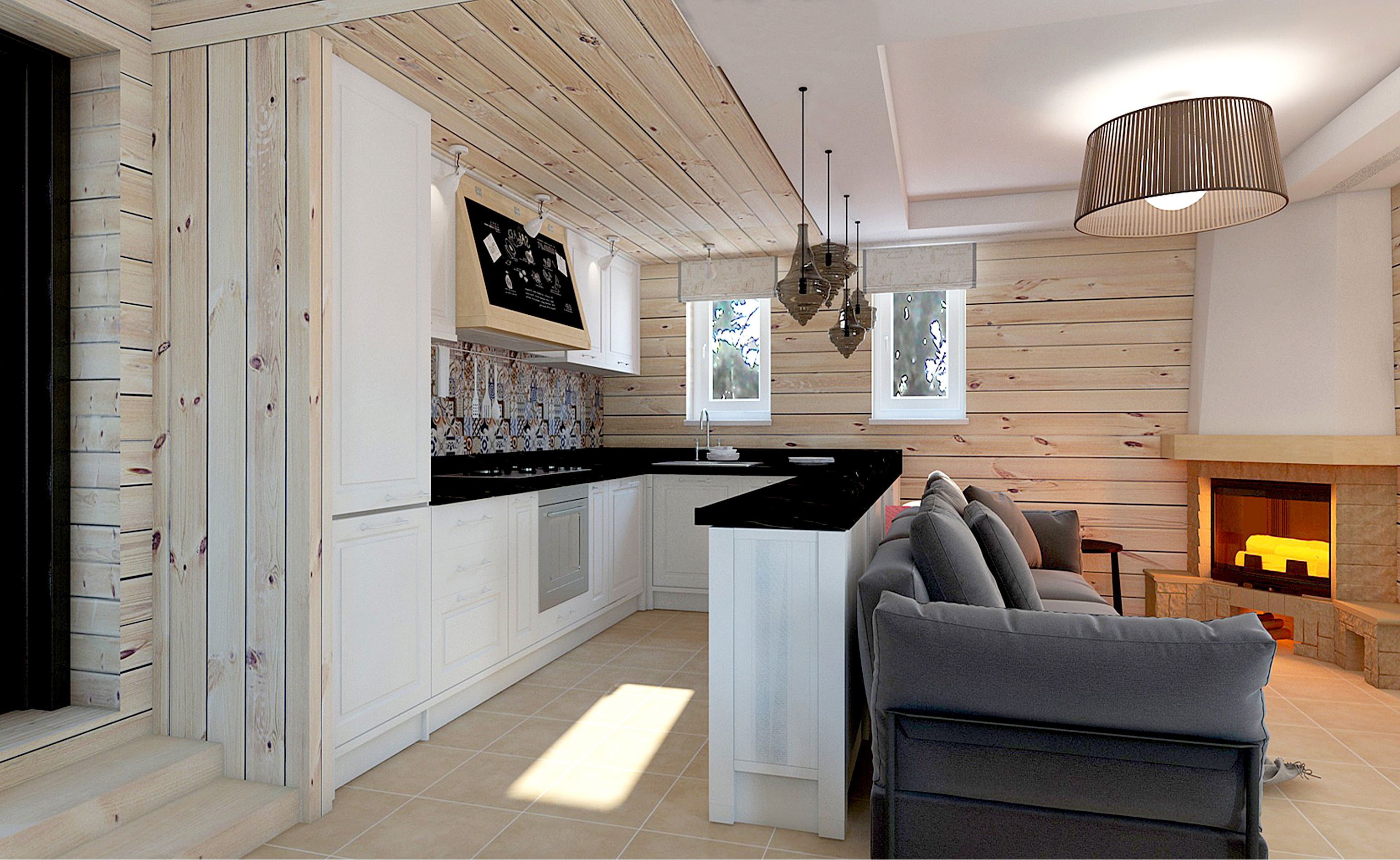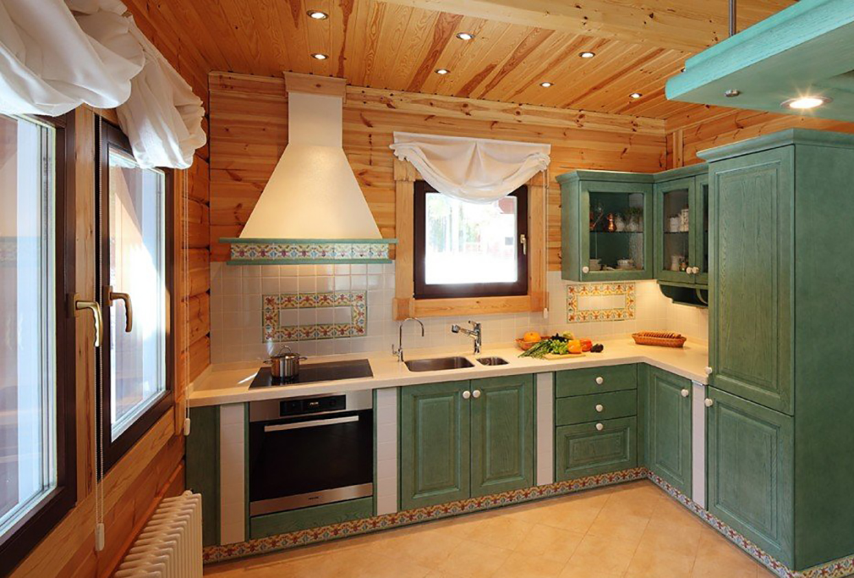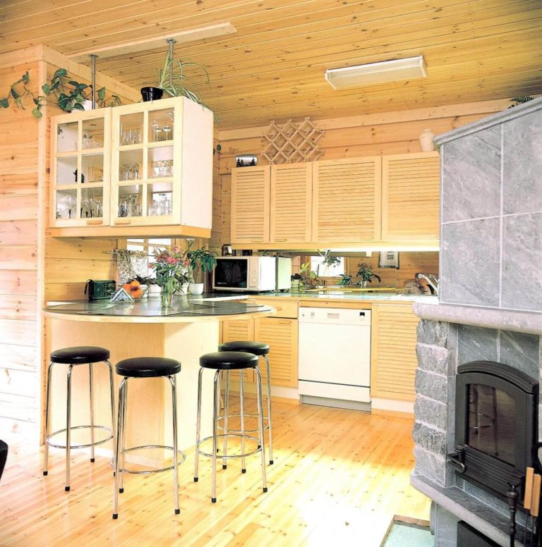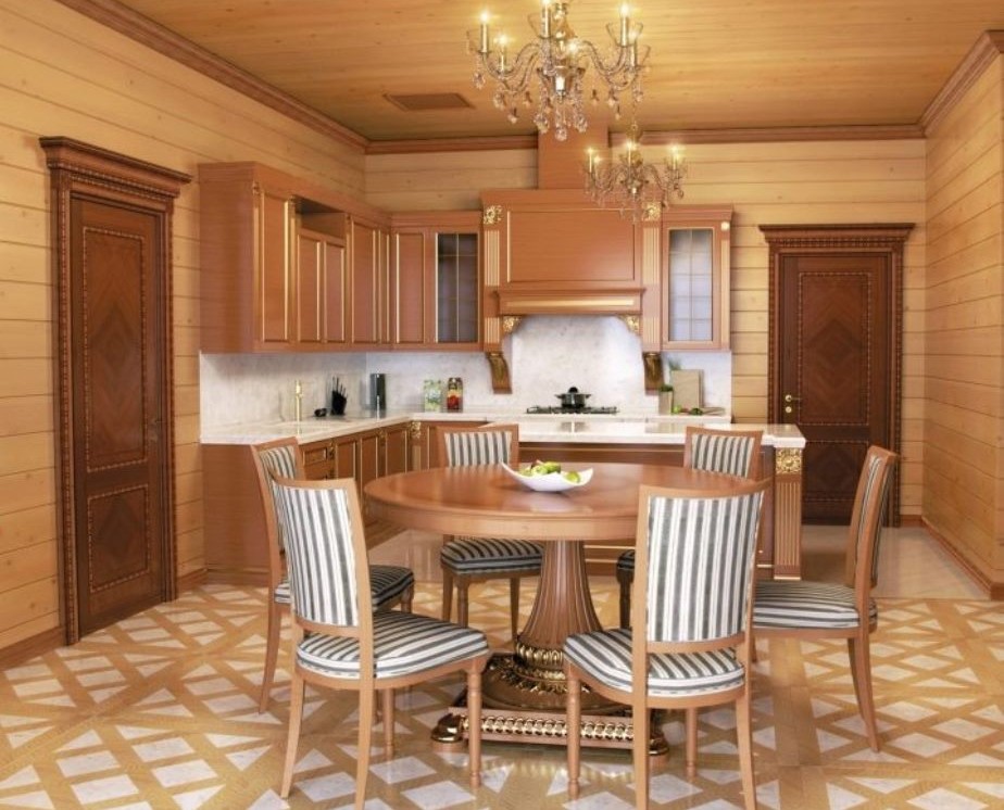 Souvent, la doublure à l'intérieur de la cuisine semble plus intéressante si elle est en bois, le pin et l'aulne sont préférés. Cette décision apporte un arôme délicat spécial de bois et de fraîcheur dans la pièce, elle apaise et vous permet de récupérer plus rapidement. Et les personnes allergiques n'ont généralement pas peur d'être dans une telle pièce, il n'y aura pas de réaction négative du corps.
