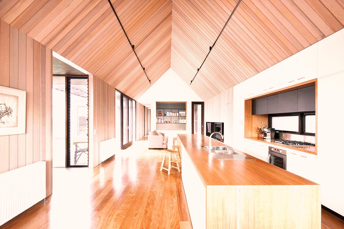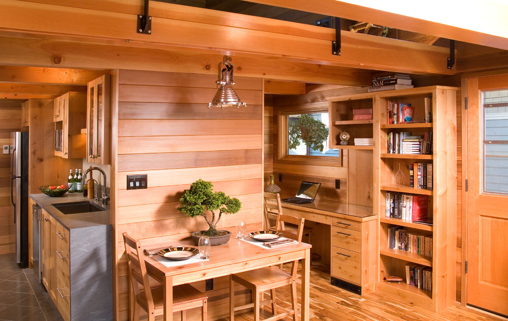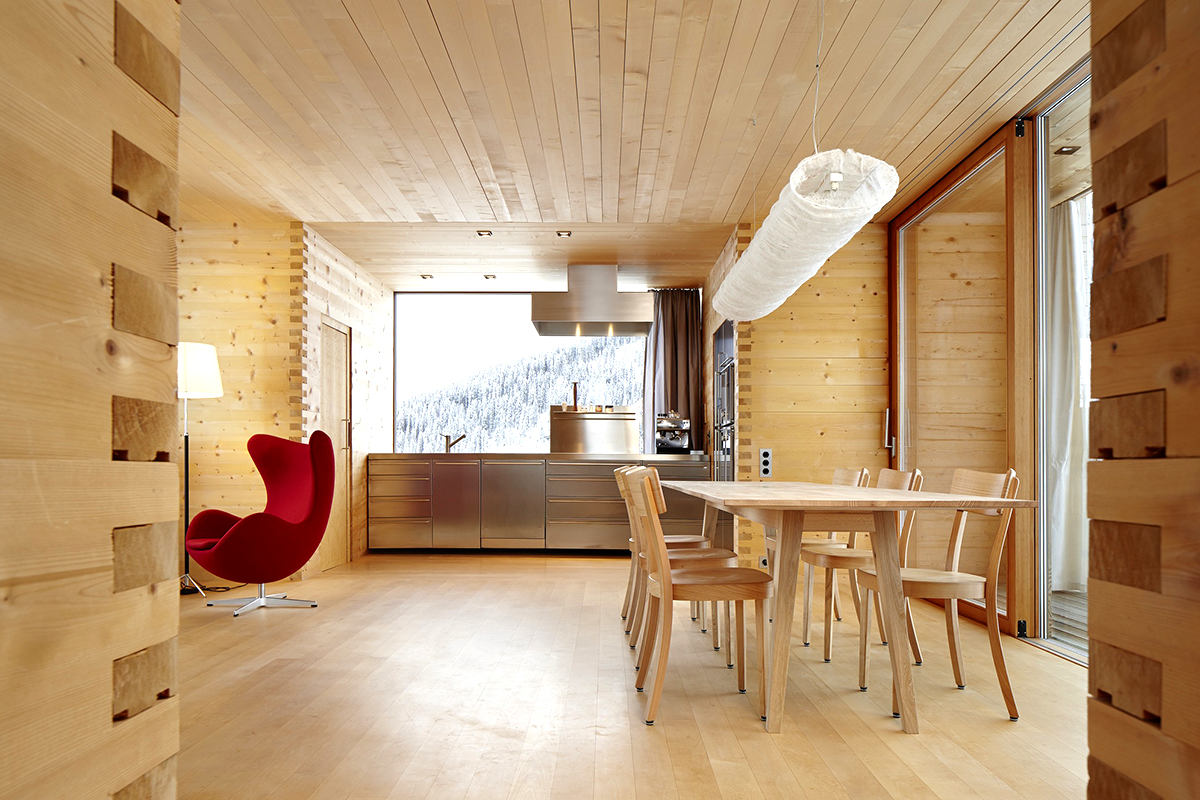 La doublure en bois s'intègre harmonieusement dans un intérieur similaire.