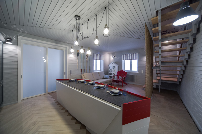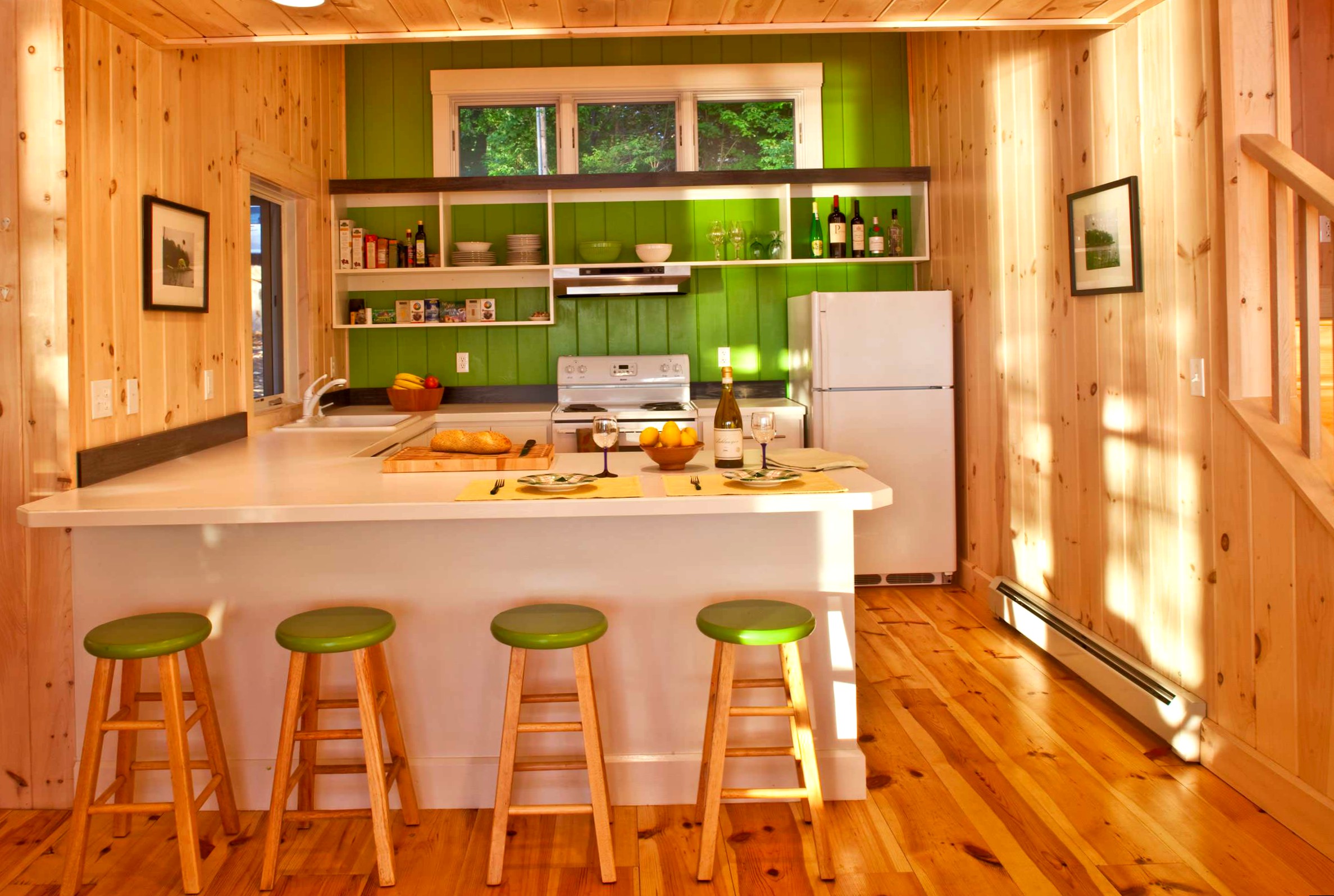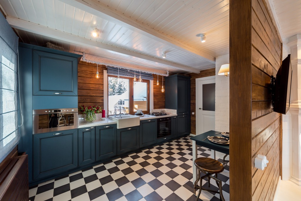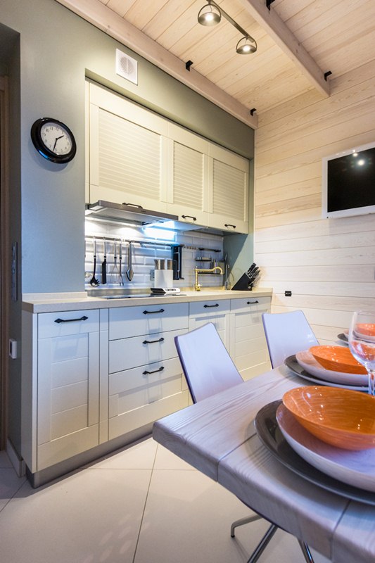 La cuisine, décorée d'une doublure en bois, est remplie d'une atmosphère particulière et d'un confort indescriptible.