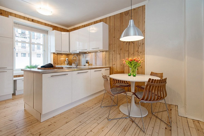 Donc, le revêtement dans la cuisine est une bonne idée s'il est correctement installé et préparé. Cet élément peut être entré dans différents styles, mais le style provençal, country et scandinave lui conviennent le mieux. Pour les options de conception modernes, il est préférable d'attirer un designer professionnel qui peut en faire une partie appropriée de l'intérieur.