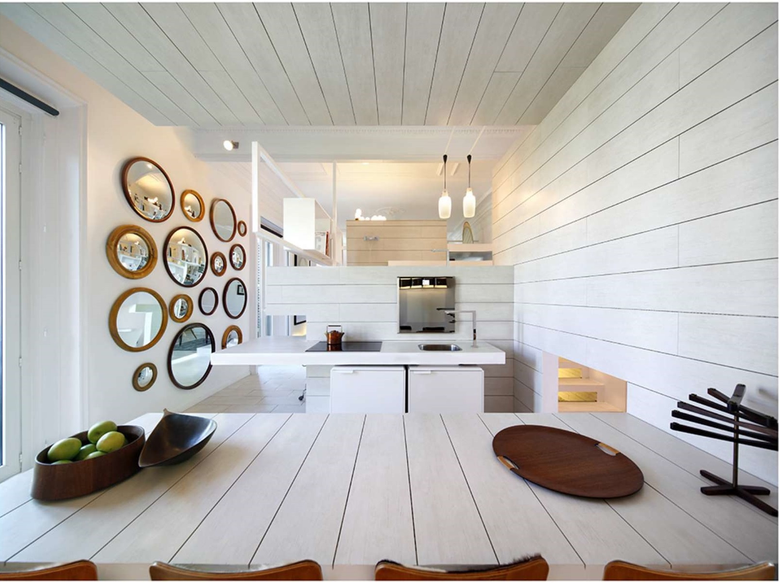Les murs peuvent être gainés verticalement et horizontalement - selon l'intérieur.