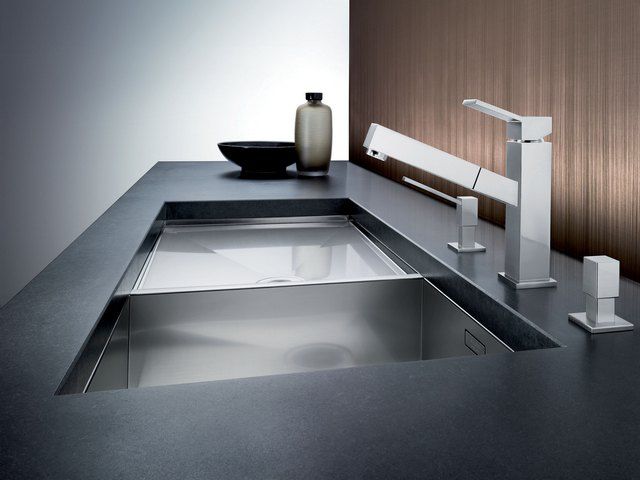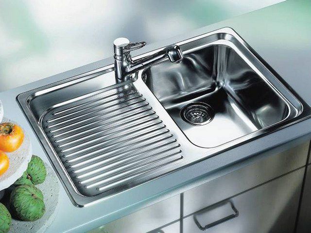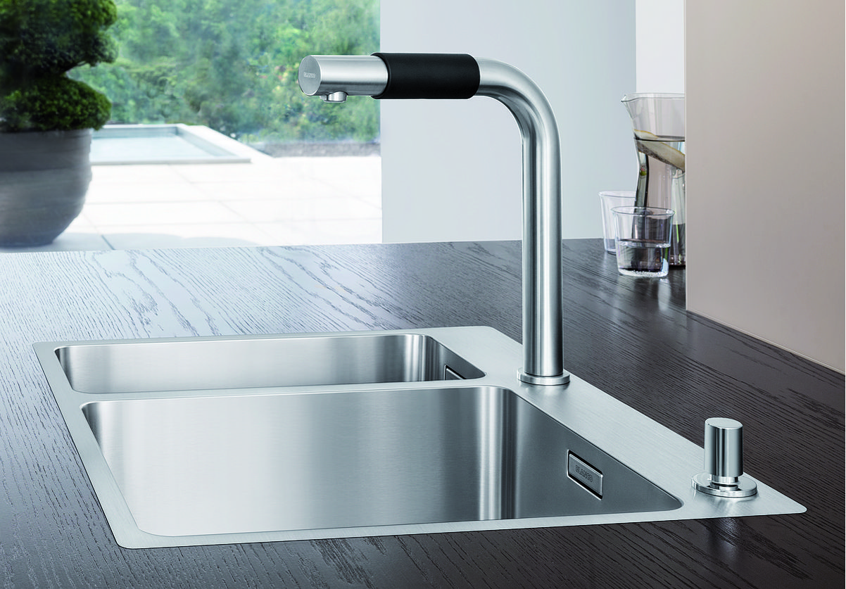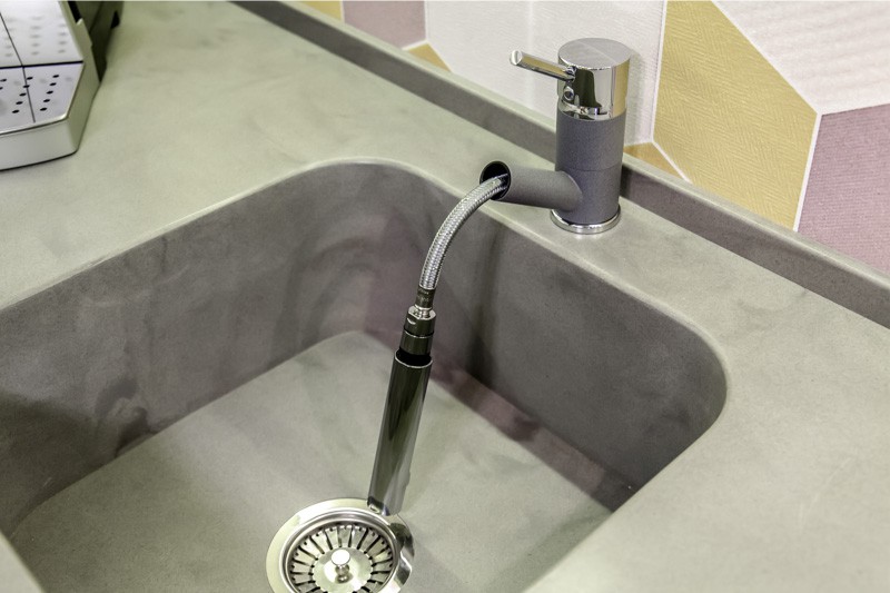 Il est important que le jet d'eau coule directement au centre de l'évier, empêchant les éclaboussures.
