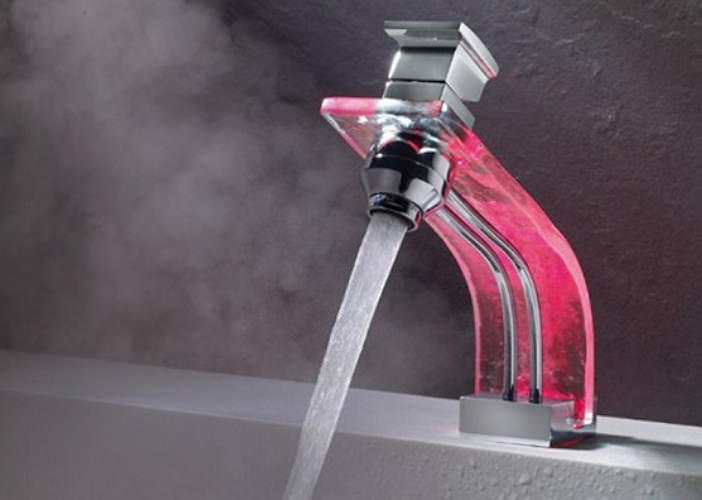 - Salut-tech. Un style contemporain pourra donner une version sans contact du mélangeur. Tous les modèles avec ce design sont rendus minimalistes et élégants - c'est exactement ce que la haute technologie exige.