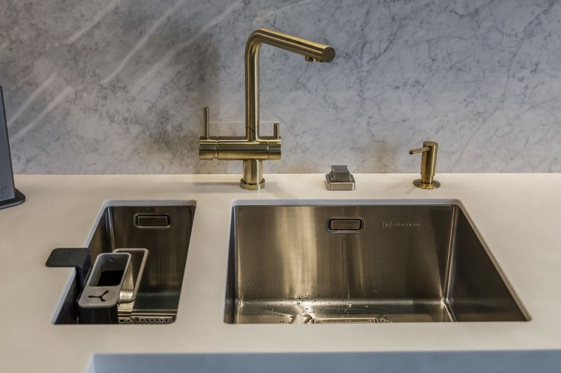 Le robinet d'évier pour la cuisine doit être pratique. Par conséquent, l'option d'un mélangeur sans contact à cet effet ne convient pas. Pour modifier la température de l'eau, vous devrez constamment vérifier l'unité supplémentaire, qui est souvent installée loin du robinet lui-même.