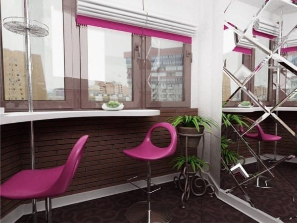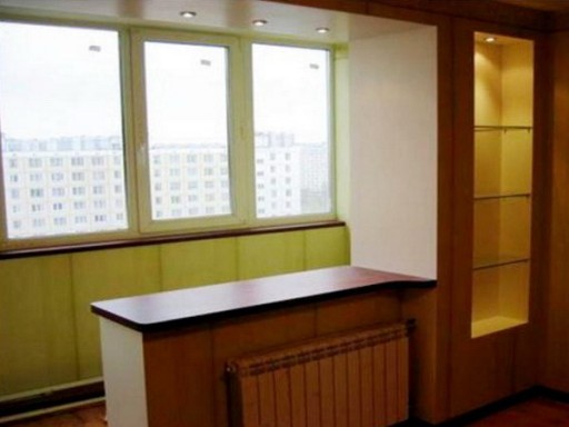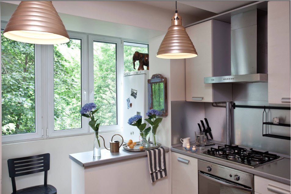 Les propriétaires devront y déplacer toutes les communications, il faudra parfois obtenir des autorisations spéciales pour de telles transformations. Près de la fenêtre, vous obtenez un endroit très pratique.Il n'aura pas besoin d'être équipé d'un éclairage supplémentaire.