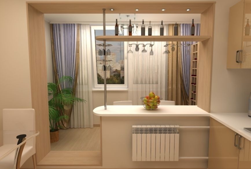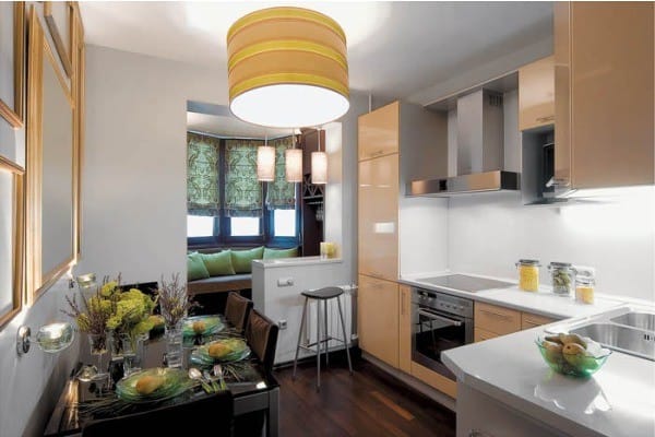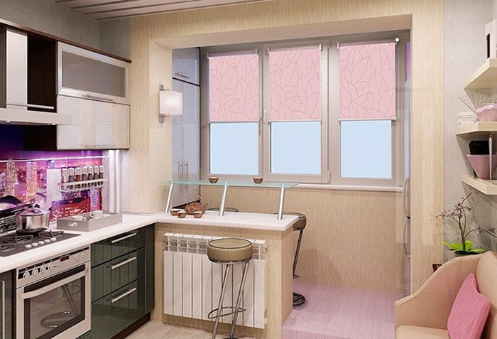 La conception combinée d'une cuisine avec balcon peut être très fonctionnelle. Les propriétaires de l'appartement n'ont qu'à choisir l'idée la plus appropriée.