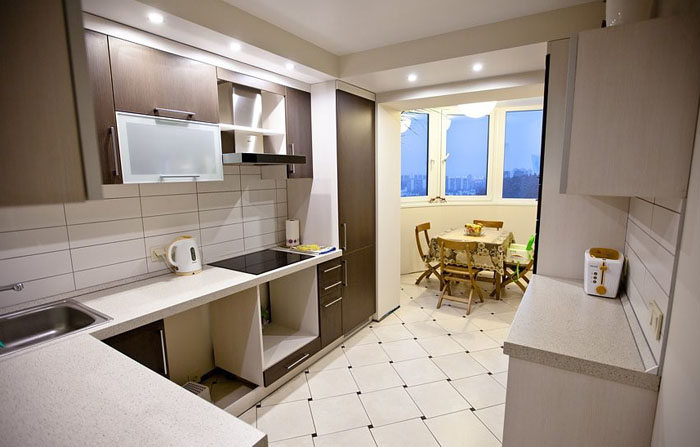 En connectant le balcon, vous pouvez agrandir la zone de travail de la cuisine