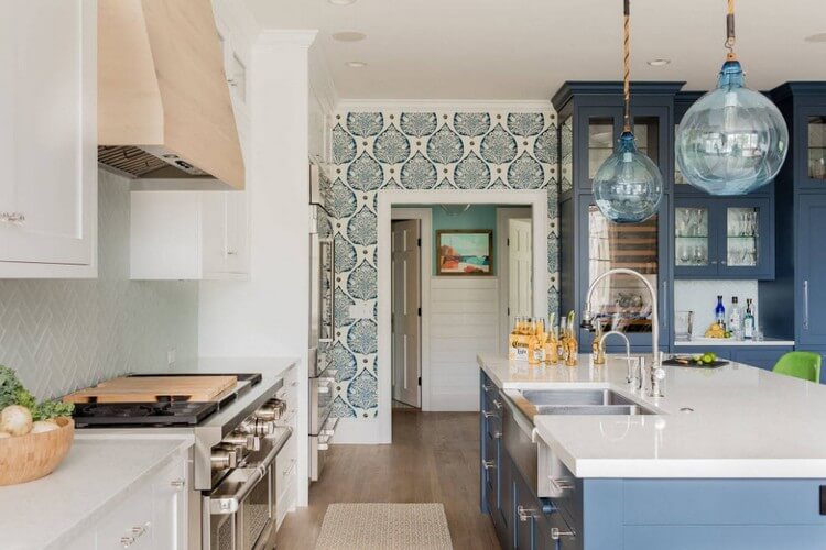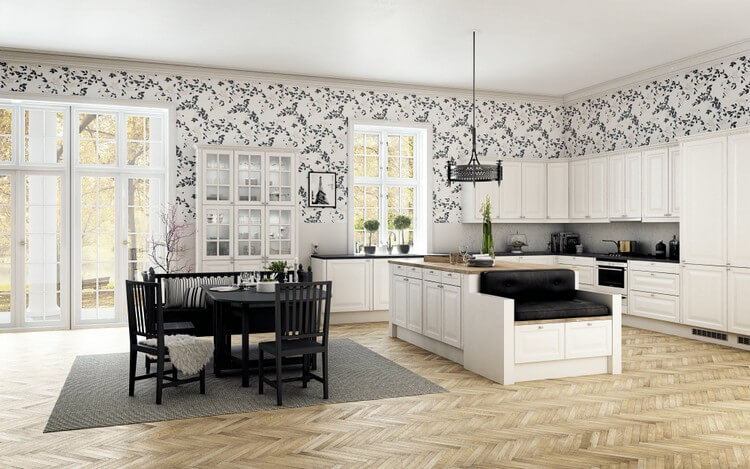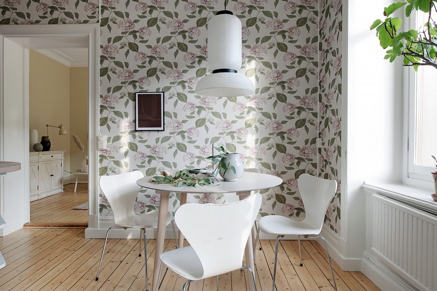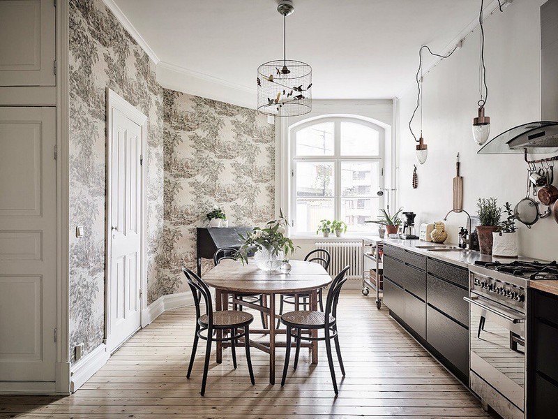 Le papier peint peut recouvrir complètement les murs de la cuisine ou être utilisé comme accents, tout dépend du goût des propriétaires et de la décision de conception