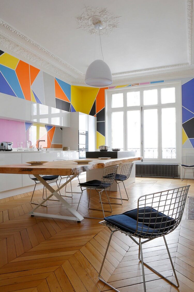 Si vous appréciez une atmosphère familiale détendue, choisissez un papier peint avec un motif discret dans des couleurs pastel.