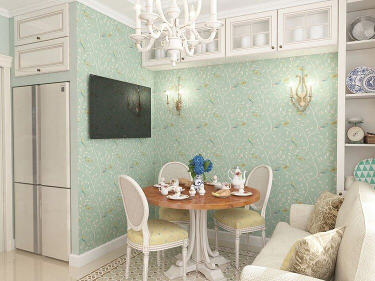 - il est préférable de choisir des couleurs claires avec un petit motif qui agrandit visuellement l'espace et ajoute plus de lumière à la pièce;