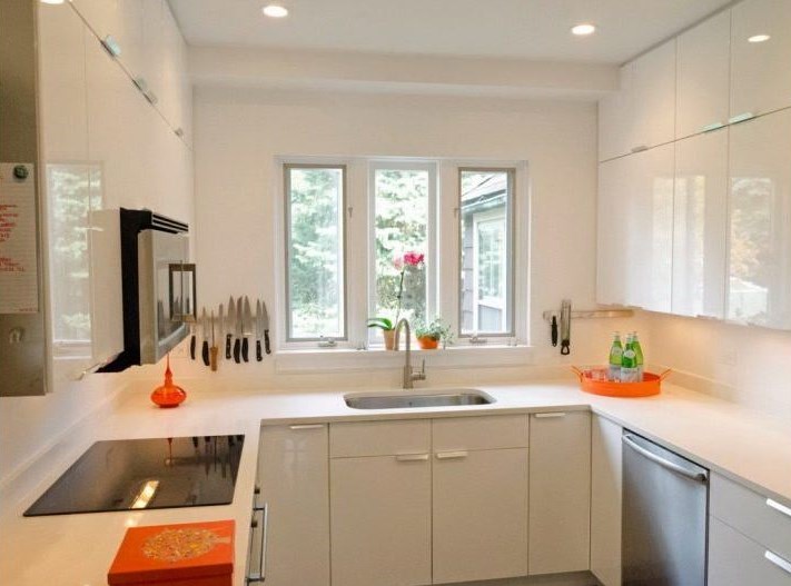 La surface réfléchissante d'un film PVC brillant augmentera les dimensions de la cuisine