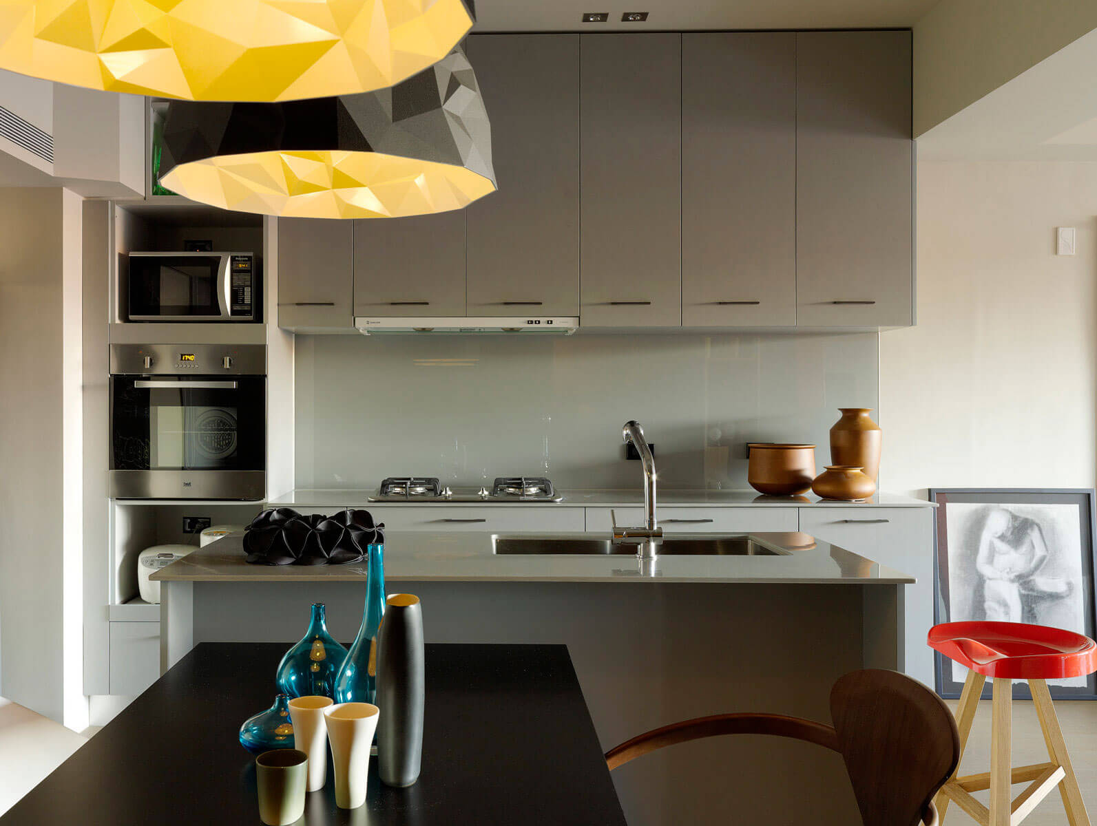 Les armoires jusqu'au plafond aideront à placer plus d'ustensiles de cuisine sans nuire à la zone de travail