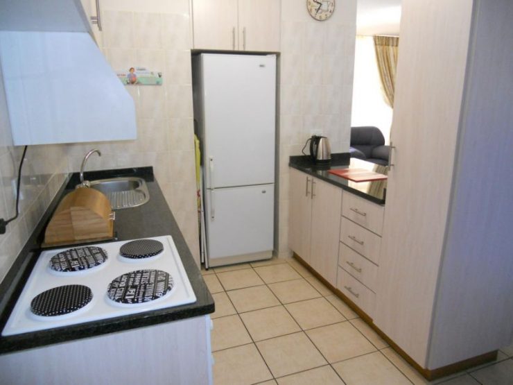 - placez le réfrigérateur dans le coin, à la fin de la zone de travail. Sur le côté opposé, vous pouvez disposer symétriquement une armoire verticale;