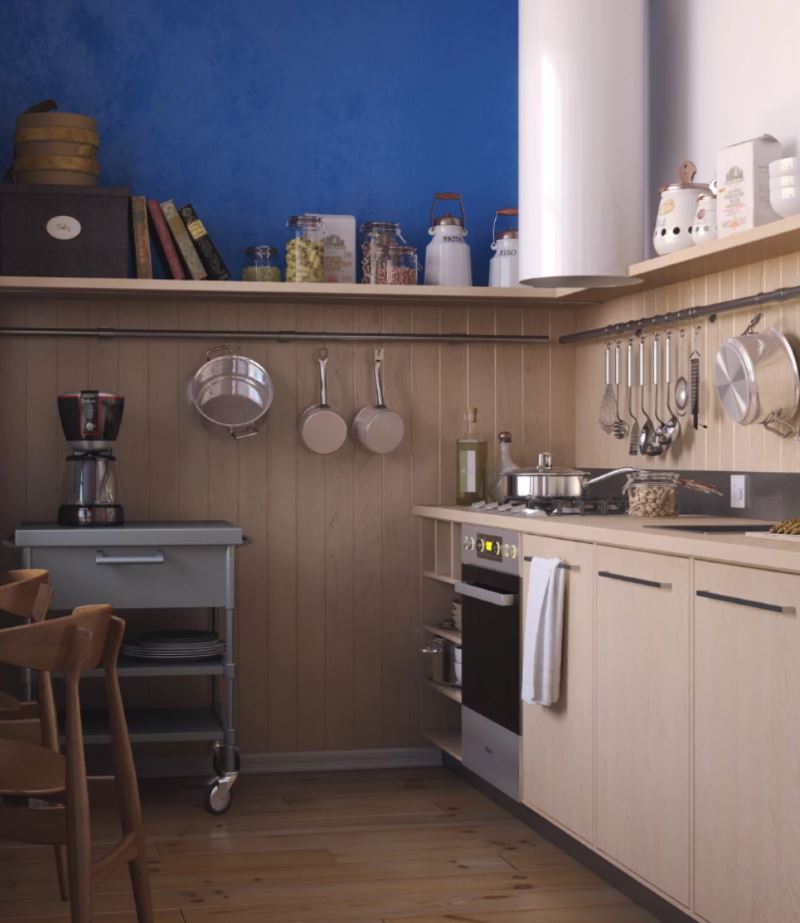 Un exemple d'utilisation rationnelle de l'espace étroit entre le poêle et l'armoire