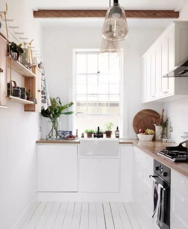 Un bon éclairage agrandira visuellement l'espace d'une petite cuisine