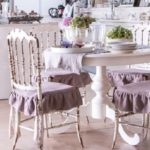 - Élément obligatoire - textiles. Sans cela, il ne sera pas possible de créer une identité d'entreprise. Une abondance de volants, divers éléments décoratifs est souhaitable. Il est préférable d'utiliser des tissus naturels. Vous pouvez poser une nappe ordinaire dans un style rustique sur la table et poser des oreillers moelleux sur les chaises.