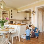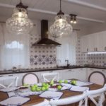 L'éclairage doit être doux. Assurez-vous que suffisamment de lumière tombe sur la zone de travail de la cuisine. Les appliques ou abat-jour avec ornement sont magnifiques.