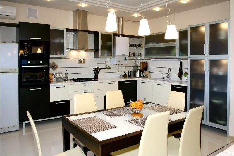 Étant donné la grande fonctionnalité de la cuisine-salon, l'approche du choix de l'éclairage de chaque zone doit être individuelle