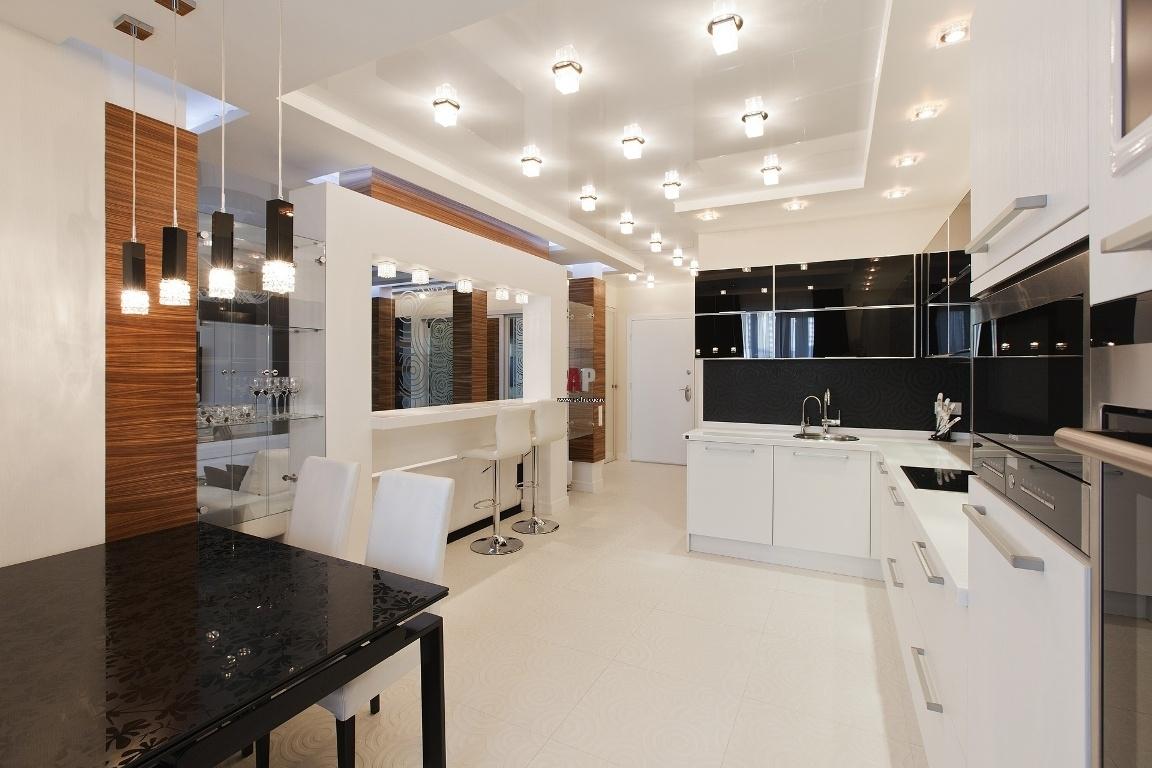 Éclairage correct de la cuisine-salon de n'importe quelle zone - c'est un éclairage à plusieurs niveaux