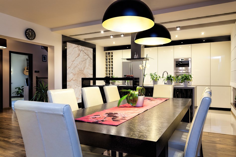 Beaucoup de gens posent la question: pourquoi avez-vous besoin d'approcher soigneusement la disposition des salles à manger et du salon avec une combinaison? Une personne comprend que l'argent pour acheter des lampes, des lampadaires et leur installation a été dépensé en vain, car un lampadaire supplémentaire est suspendu au-dessus de la table, ce qui n'est pas du tout nécessaire, car la table est suffisamment éclairée par une applique locale, et vice versa, il n'y a pas assez de lumière au-dessus du poêle.