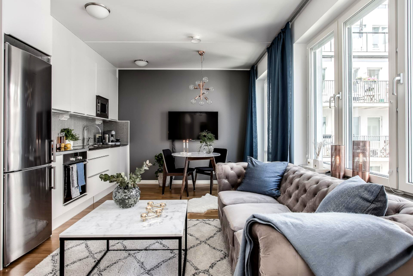 - Canapés compacts - ne surchargez pas la pièce avec des volumes excessifs, la préférence devrait être donnée aux modèles ergonomiques.
