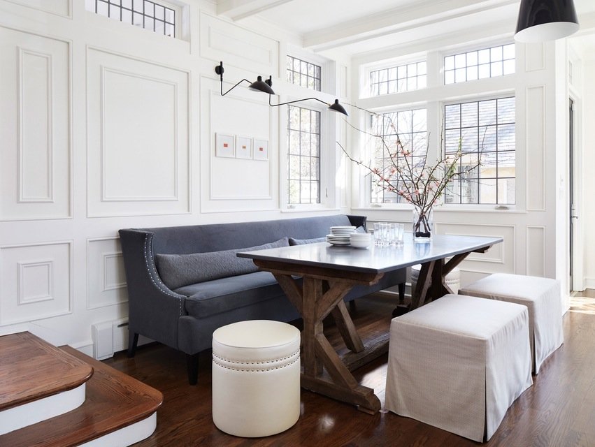 Un tel canapé convient à une petite cuisine dans une vieille maison à panneaux