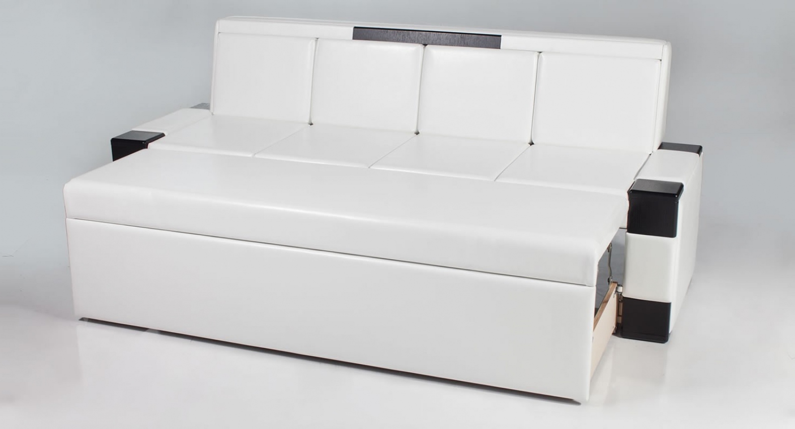 - Avec de grands tiroirs - s'il est important d'équiper un entrepôt de choses sous les sièges, il est important de choisir une conception avec un secteur latéral de levage. Vous pouvez à tout moment obtenir différentes choses en toute sécurité, sans déranger les personnes assises. A l'intérieur du canapé, vous pouvez faire un rangement pour les appareils électroménagers (fer à repasser, sèche-cheveux), linge de lit, organiser tout un minibar.