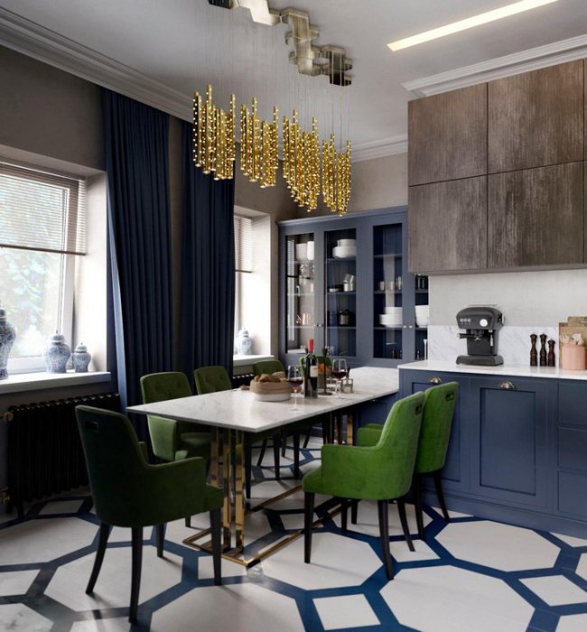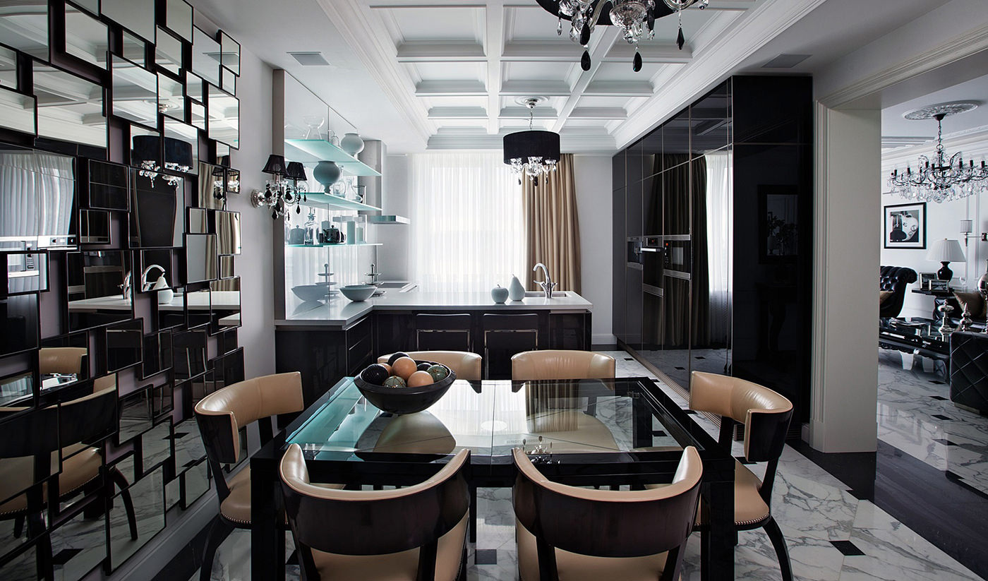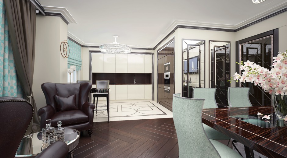 La conception de la cuisine-salon dans le style Art Déco, les principaux aspects
