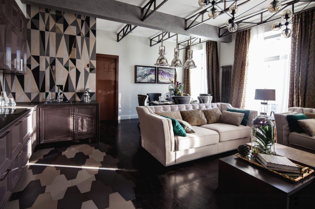 Art déco et loft sont des styles à la mode et modernes qui peuvent être combinés avec succès, ajoutant des éléments de chic à l'urbanisme et vice versa.