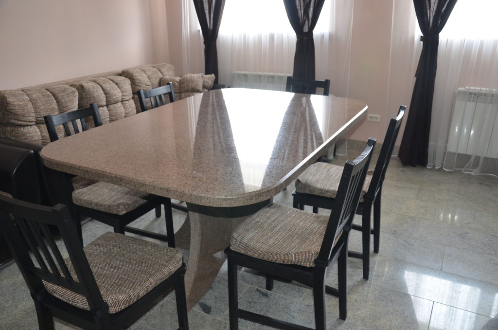 Information complémentaire. Une table coulissante en pierre pour la cuisine prend beaucoup de place uniquement lorsqu'elle est dépliée. Cette conception est idéale pour une grande et spacieuse salle à manger.