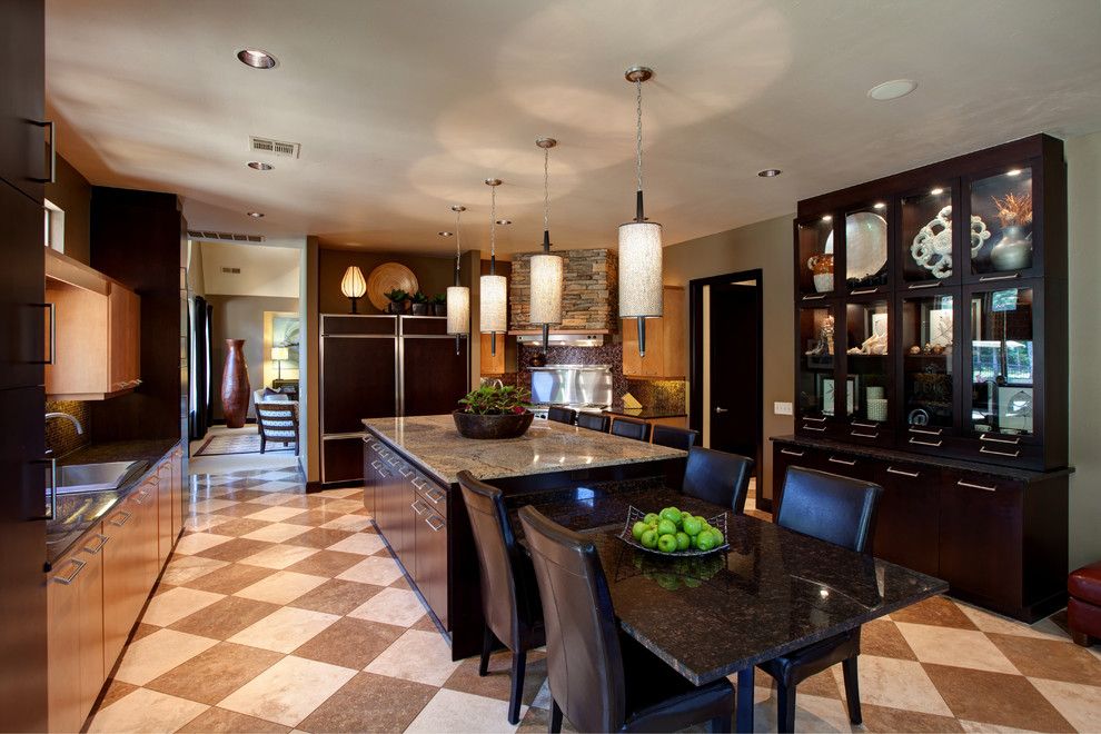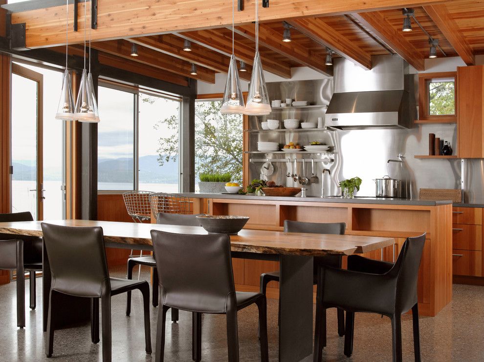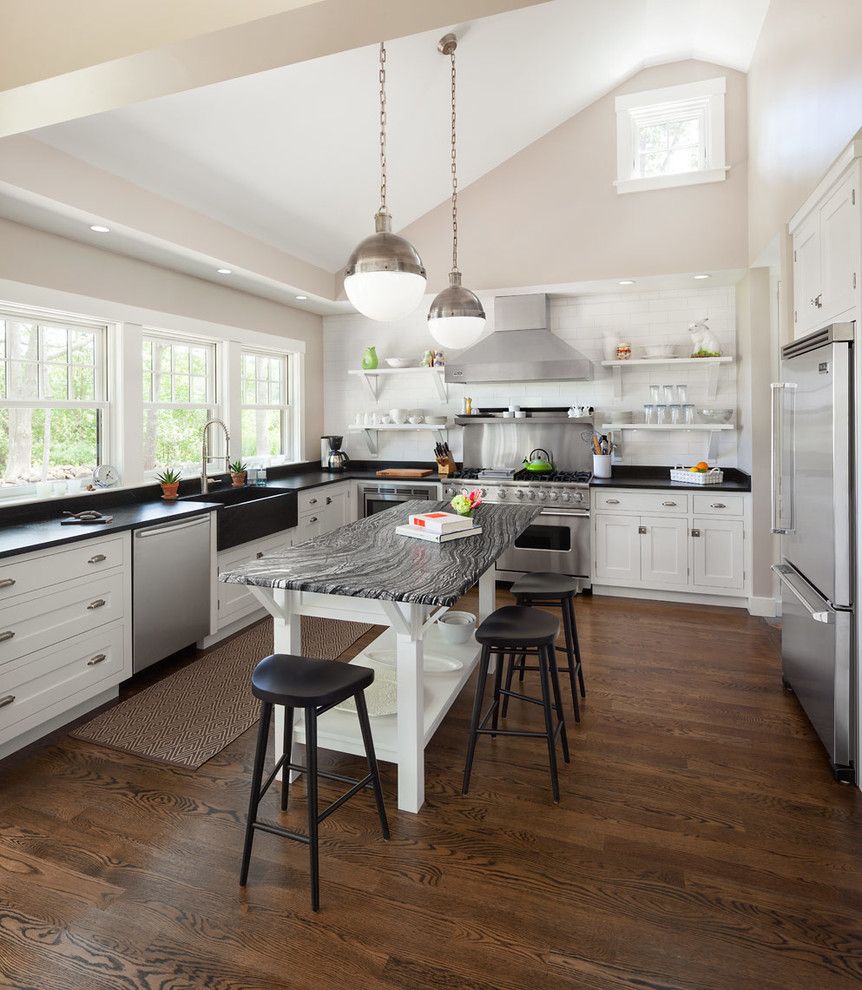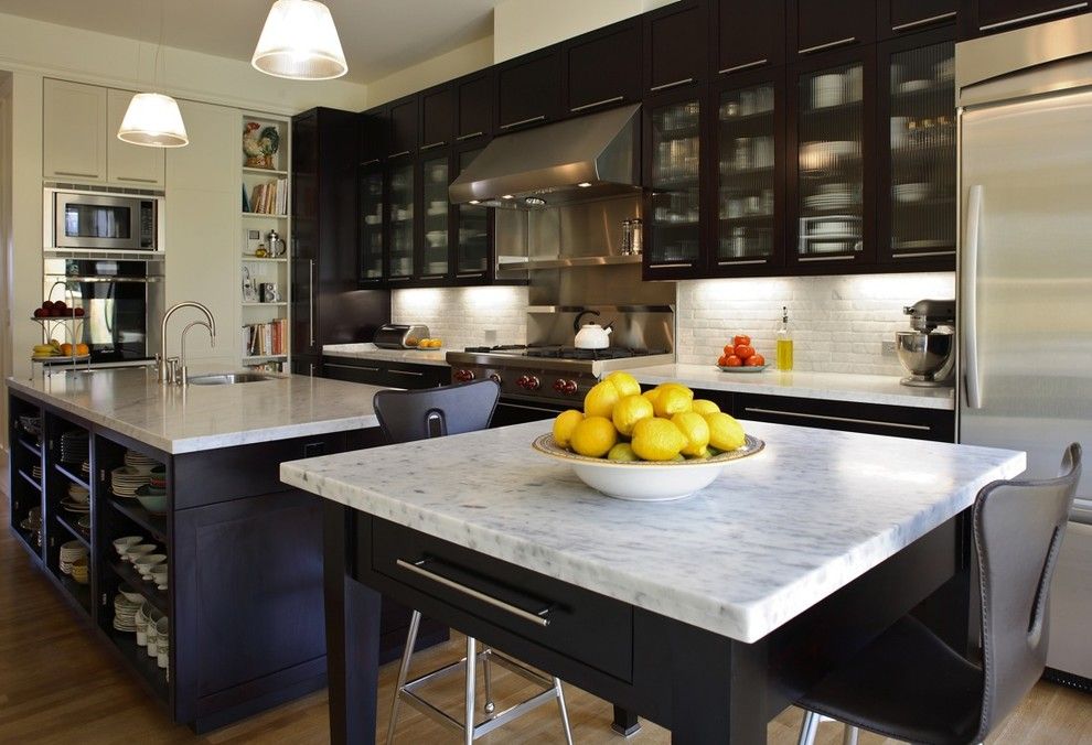 Les matériaux utilisés pour la fabrication des tables de cuisine avec des plans de travail en pierre peuvent avoir une structure et une couleur différentes, révélant une grande variété de solutions de conception. Les spécialistes peuvent réaliser des modèles avec des comptoirs polis ou mats, dont la forme et la taille peuvent être quelconques.