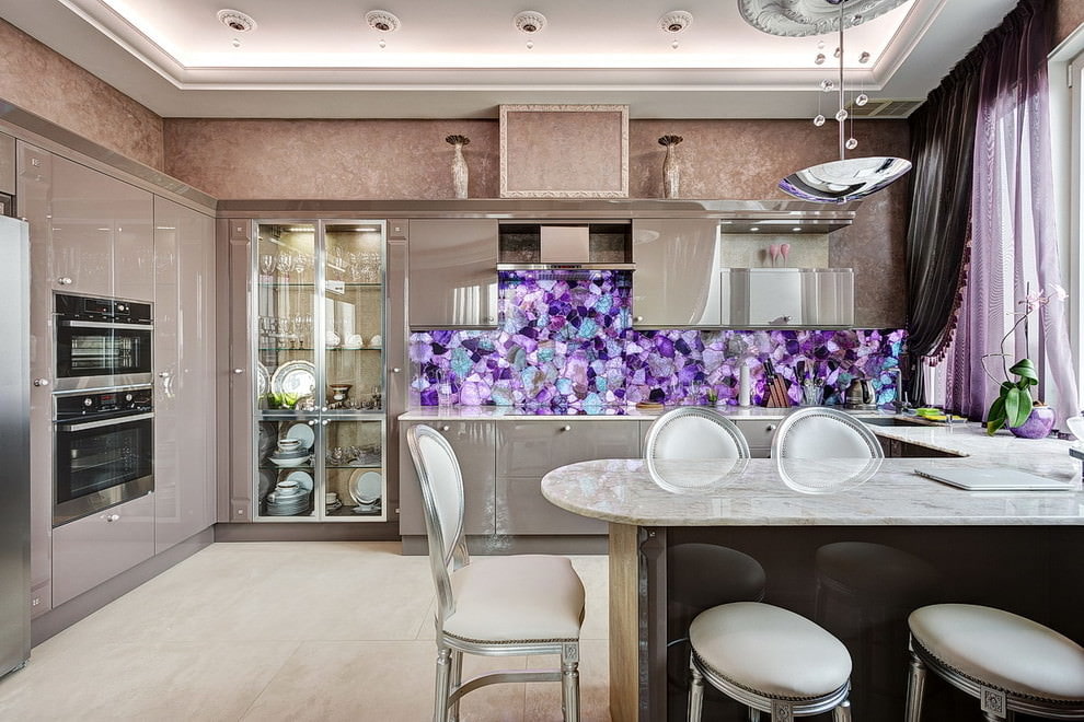 La pierre artificielle est récemment devenue de plus en plus populaire, non seulement lorsqu'elle est utilisée dans la décoration, mais aussi dans la décoration intérieure. Particulièrement souvent, un matériau artificiel est utilisé pour décorer l'intérieur de la cuisine. Et si vous ne prenez pas en compte le revêtement des murs, la pierre est utilisée pour la fabrication de comptoirs de bar, de comptoirs et de tables.
