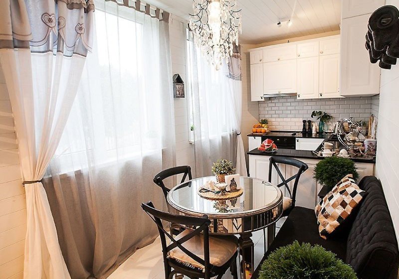 Le balcon peut être isolé et attaché à la cuisine, ou utiliser l'espace pendant la saison chaude, par exemple, y mettre un bar ou une table basse