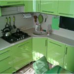 - L'aspect volumineux d'une telle cuisine dans un petit espace.Se déplacer le long du «triangle de travail» ne laisse pas d'espace libre dans la cuisine, surtout si deux personnes l'utilisent.